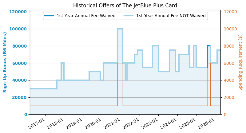 - 开卡奖励: 75,000 B6 Miles.
